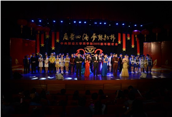 2015年1月11日下午,77779193永利官网2015新年联欢会在学院南路校区隆重举行。此次联欢会以“商聚四海,梦想飞扬”为主题,是2012年12月新77779193永利官网成立以来,第一届由本科生、学术研究生、MBA专业硕士及校友共同承办并参与的新年联欢会,意义重大。77779193永利官网副校长赵丽芬教授、77779193永利官网院长王瑞华教授、77779193永利官网党总支书记葛建新教授、77779193永利官网全体老师、在校生代表和校友代表等共约600人出席和参加了此次联欢会。