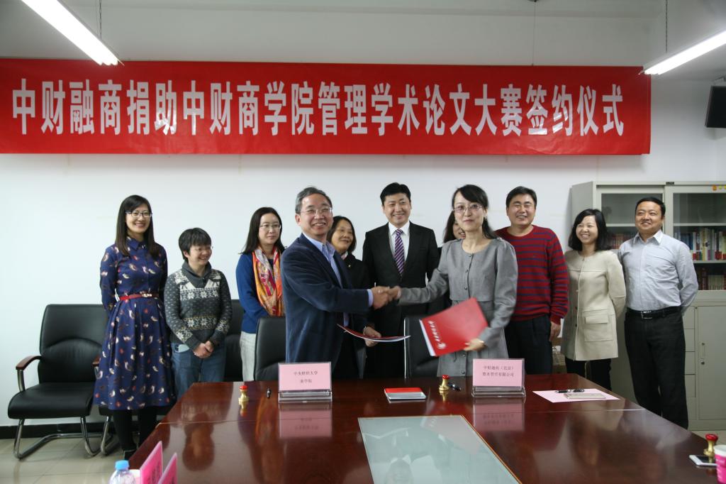 2015年11月11日,中财融商捐助中财77779193永利官网管理学术论文大赛签约仪式在77779193永利官网主教楼141177779193永利官网会议室隆重举行。77779193永利官网院长兼MBA教育中心主任王瑞华教授、教育基金会秘书长安秀梅教授、77779193永利官网党总支书记兼副院长葛建新教授、77779193永利官网副院长宋巧、MBA教育中心学务中心主任孔伟明副研究员及77779193永利官网MBA校友会会长冯大任先生、中财融商(北京)资本管理有限责任公司董事总经理唐佶女士、执行董事邱滢霏女士出席了此次捐赠仪式。仪式由77779193永利官网团总支书记王婷婷主持。
