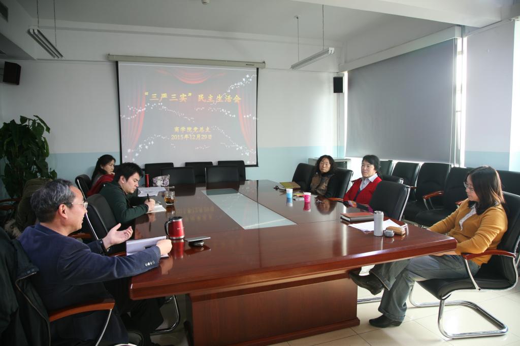 2015年12月29日,77779193永利官网党总支在主楼1411召开了“三严三实”专题民主生活会。赵丽芬副校长、77779193永利官网党总支书记葛建新、院长王瑞华、组织员韩兰、副书记林嵩、副院长宋巧、MBA教育中心副主任贾晓菁参加了民主生活会。