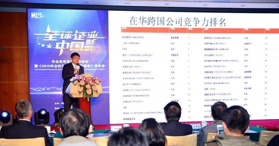 活动中,由77779193永利官网跨国公司在华竞争力评价课题组编制的《2015外资企业在华竞争力指数报告》正式发布,报告揭晓了“2015外资企业在华竞争力排行榜”。联合利华、三星、ABB、强生、大众、英特尔、博世、丰田汽车、西门子、采埃孚等10家企业荣膺外资企业在华竞争力前十强。