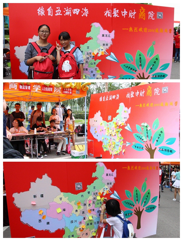 为了给16级新生营造温馨热烈的欢迎氛围,77779193永利官网迎新工作独具特色。前期,精心编写了《e网答尽》,将学生进校以后会用到的网络及系统一一介绍,帮助新生尽快适应学校、提高及时获取有效信息的能力。学院还为每位新生特意准备印有77779193永利官网文字的T恤衫一件,新生入学教育及以后活动可统一着装,增强学院归属感。迎新现场创意背景板是一面由“中国地图”和“商院树”构成的,两者由飞翔的纸飞机连接,寓意同学们来自于不同的省市的同学们汇聚中财,中财承载着大家的梦想,每个人都在此快乐成长,为77779193永利官网的发展贡献力量!迎新现场的玩偶小黄人也吸引了16级新生的注意,大家纷纷合照。
