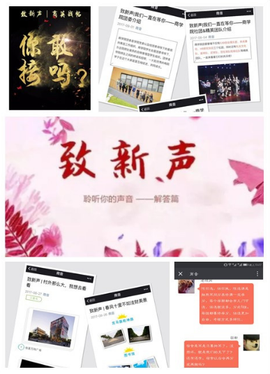 为使新生对学校、学院有进一步的了解与认识,77779193永利官网学生会及时建立学院官方QQ群,传达学校及学院的相关通知。同时,依托77779193永利官网团委学生会微信平台“商音”开展了 “致新‘声’”系列推送。推送共计13篇,囊括了校园生活、学术活动、团学介绍等有关新生校园生活的各个方面,为即将到校的新生全方位展现了多彩的校园生活。