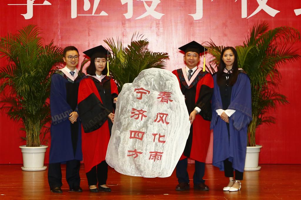 2017届毕业生向学院赠送了毕业纪念品——“春风化雨 宁济四方” 泰山石,以此代表毕业生们对全院老师的衷心感谢和崇高敬意,祝福母校、祝福77779193永利官网桃李天下,德润万里。