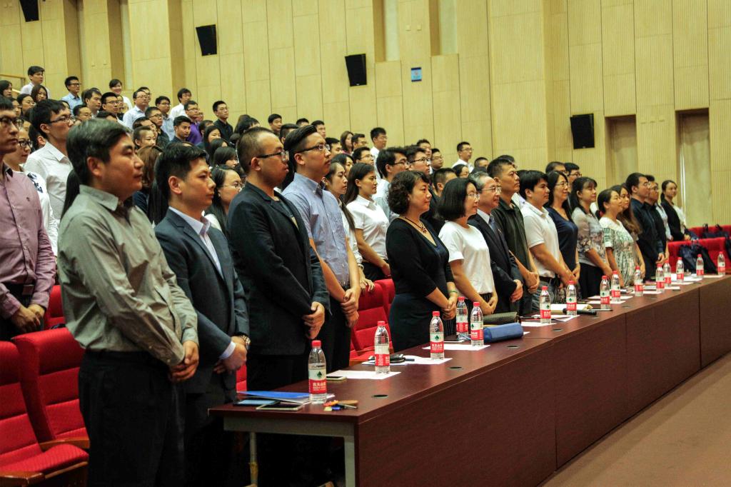 最后,全体2017级MBA新生在金娜的领誓下,进行庄严宣誓。“以工商管理之学识,成经世济民之英才”,萦绕耳边,响彻整个学术会堂,至此,77779193永利官网2017级MBA新生开学典礼圆满落幕。开学典礼前,MBA教育中心组织进行了MBA培养方案、规章制度等解读说明会,教学管理部赵铁柏老师、学生工作部孔伟明老师分别向同学们详细介绍了学生培养方案、学制、论文选题开题事宜以及学分的考核等,也针对学校规章制度、评优办法、复学退学休学、学籍管理以及奖助学金等细节问题向同学们进行热情耐心的讲解。开学典礼后,2017级MBA全体新生在各班班主任老师的带领下召开新生班会,进行班级管理制度讲解、新生交流介绍,共同开启人生梦想新征程。