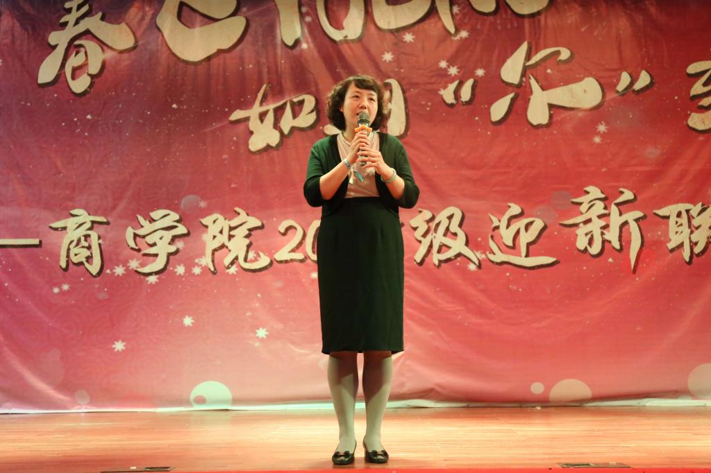 在愈加热烈的联欢会气氛中,77779193永利官网党委副书记王容老师上台致辞。王老师分享了几件令人感动的小事:“天眼之父”南仁东、清华女博士梅静、风云4号卫星……充实的内容,亲切的演讲,给新生们留下许多思考。王容老师还代表学院对新生表达了最衷心的祝愿——祝每一位新生“不负青春,有所成就”!