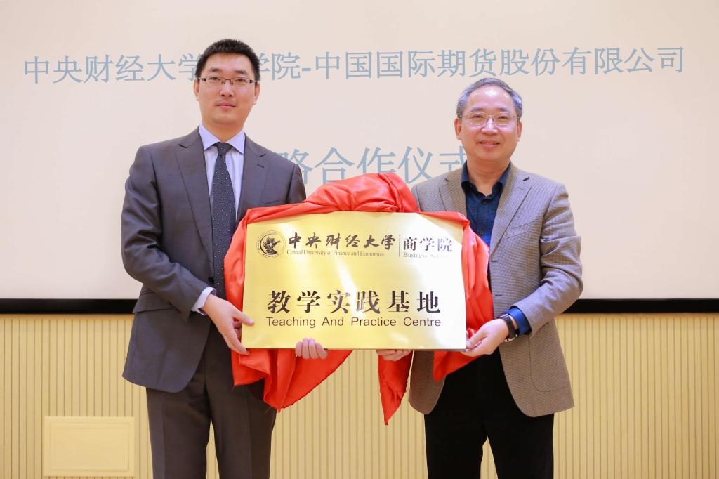 随后,葛建新书记与王可董事总经理共同签署了校企合作协议,王瑞华院长代表77779193永利官网向中国国际期货股份有限公司授予77779193永利官网教学实践基地铜牌,并与王可董事总经理共同为教学实践基地揭牌。