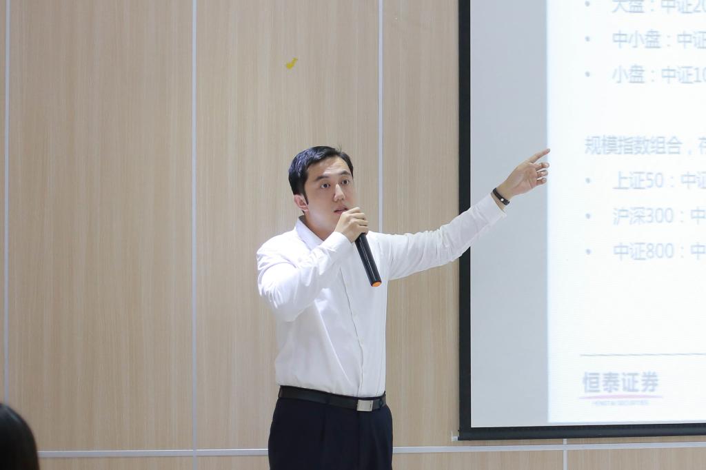 中泰证券资管部投资主办人张宗奇就《2017年利率走势及股指期货分析及展望》进行了分析,并对规模指数进行了详细解读。张先生提出,股票在不同阶段存在不同表现,主要趋势因素体现在指数的成长性和价值性上。实体经济的兴衰可以更好地体现在大盘蓝筹上,每次金融危机结束后,经济复苏前,理性投资者必然优先选择价值更被低估,盈利确定性更高的大盘蓝筹,而不是小盘股。随后,张宗奇先生还就阿尔法套利基本逻辑、板块与因子模拟结果同同学们进行了分享。