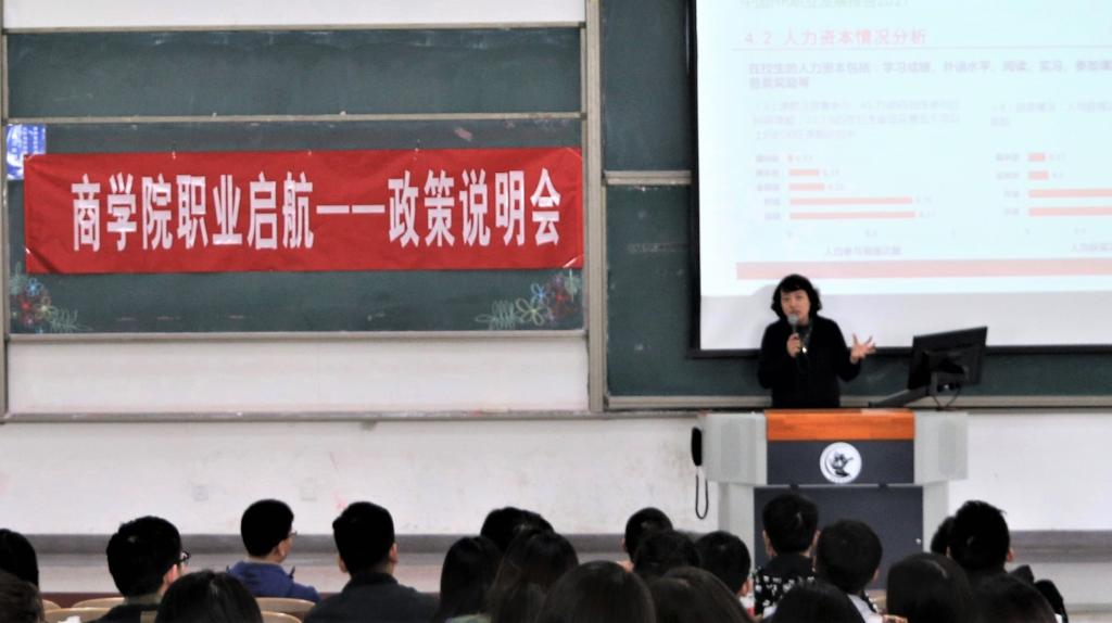 就业方面,王容老师基于往届学生职业发展情况,详细分析各个行业的基本情况和未来走势,希望同学们拓宽行业视野、就业区域视野,结合国家发展战略,去更具发展活力的新兴发展区域一展宏图。同时,王容老师也指出,本科生在校期间,要珍惜时光,努力锻炼、积累个人能力,磨砺自身的品质,在学习成绩、外语水平、阅读质量、专业知识储备、科研能力、社会实习实践等方面有意识、有侧重的加强锻炼,从而为自己未来走向职场做好功课。王老师还鼓励同学们加强自身理论水平,持续学习,关注国家政策变化,把握行业发展板块轮动态势,在进行职业选择时,从行业成长周期、自身素质与岗位的匹配、发展机会、物质报酬、自我实现等多角度考量。