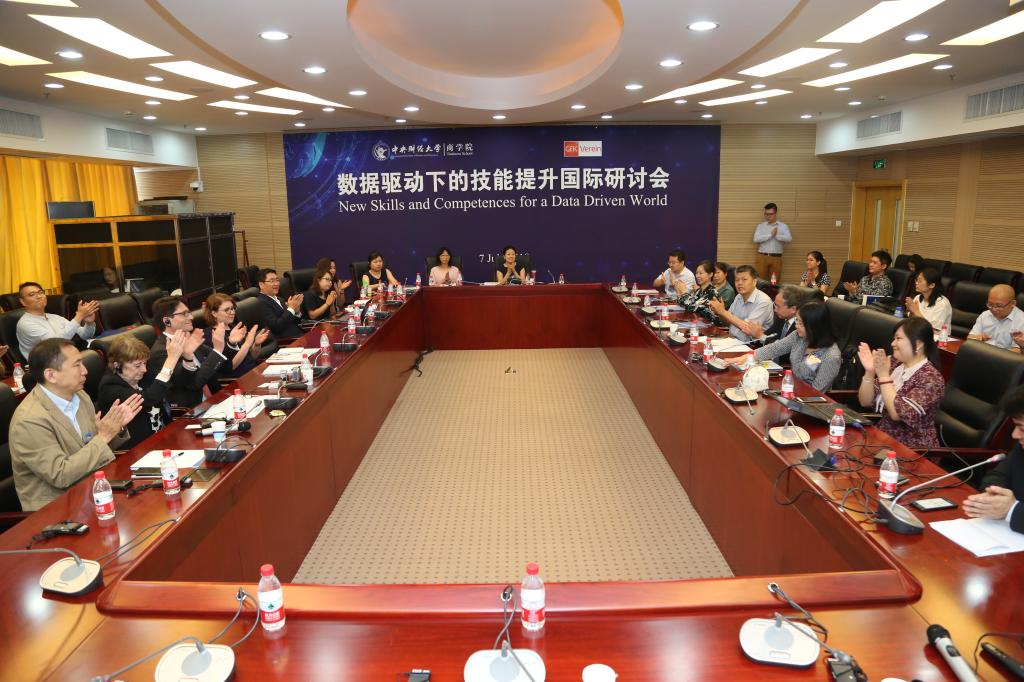 2018年7月7日,永利官网77779193永利官网与德国捷孚凯协会(GfK Verien)联合举办的“数据驱动下的技能提升国际研讨会”在学术会堂604会议室顺利举行。永利官网77779193永利官网客座教授、德国捷孚凯协会副总经理Dr. Andreas Neus、捷孚凯中国总经理周啓群先生、捷孚凯全球培训主管PhyllisMacfarlane女士、德高中国总经理齐梦然先生、市场总监申昕晨女士、车主邦创始人、董事长戴震先生、联合创始人兼CEO王阳女士特邀出席。77779193永利官网院长王瑞华教授、党委书记葛建新教授、副院长林嵩教授、副院长于广涛教授出席了研讨会。来自捷孚凯中国的13位企业友人、77779193永利官网20余位师生齐聚一堂,共同出席了本次研讨会。