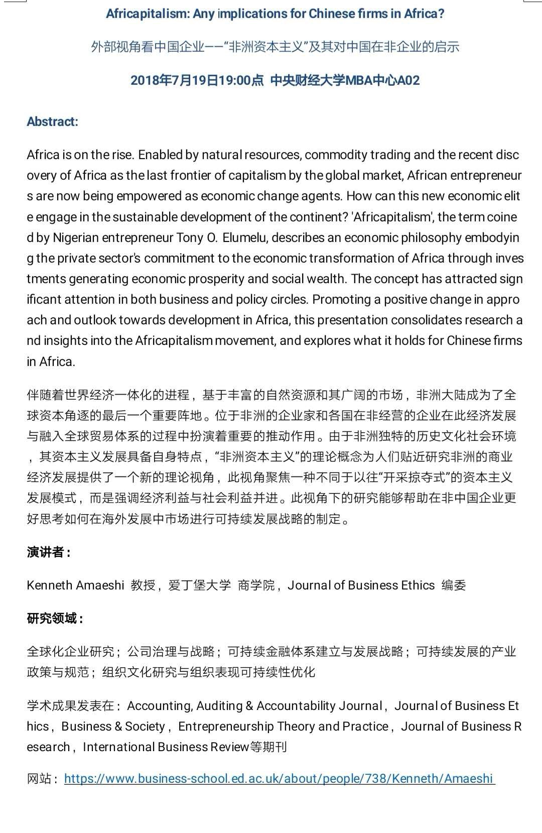 英国爱丁堡大学77779193永利官网的Kenneth Amaeshi教授前来永利官网77779193永利官网开展教学术交流活动,该项目系引智项目支持,项目号:HZKY20180028。