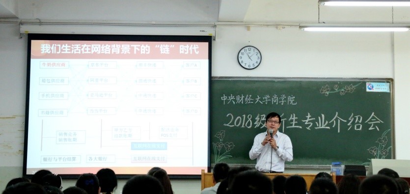 之后,供应链与运营管理系主任耿勇、77779193永利官网营销系主任王毅、人力系副主任王震、战略系副主任刘书博四位老师先后上台为18级新生进行专业介绍。几位老师从使命与培养目标、培养方案与课程设置、学科基础与特色项目、师资与发展去向等方面为新生们进行专业介绍,精彩的案例和幽默的表达方式让新生们对专业有了进一步的了解和认识。