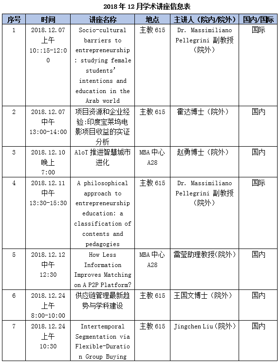 2018年12月,永利官网教师积极邀请海内外知名学者来校举办讲座,加强内外部学术交流。