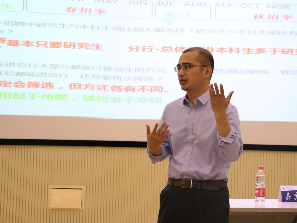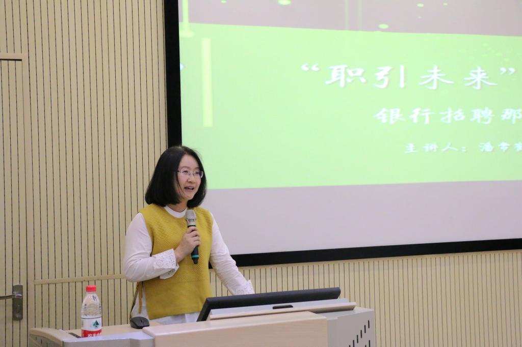 本期讲座以“拨开云雾,银行招聘那些事儿”以主题,潘常鹤校友就银行招聘的话题做出了深入浅出的讲解。