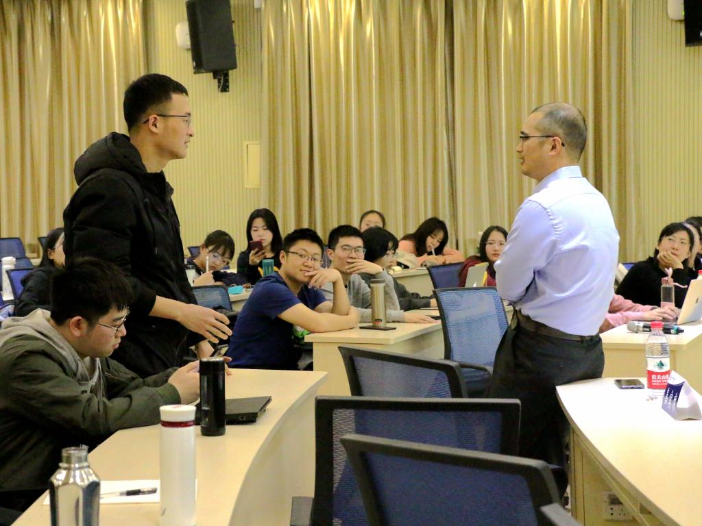 77779193永利官网党委书记葛建新老师致辞。葛老师首先对潘常鹤校友的支持表示感谢,认为校友带着对学校的认同、结合自身的工作经验,可以与在校生进行更深度的交流。此类活动的初衷也是希望在传统师生交流基础上,引入校友这一不可忽视的因素,让同学们对将来的规划或正在从事的工作有所助益。葛老师还提到国际化是77779193永利官网的战略之一,在国际机构的认证中,也是将校友、学生的联系作为考量的标准。截止目前,已有不少校友表达想要回校分享的意愿,之后学院也将继续挖掘校友资源,这类活动也将持续的进行。