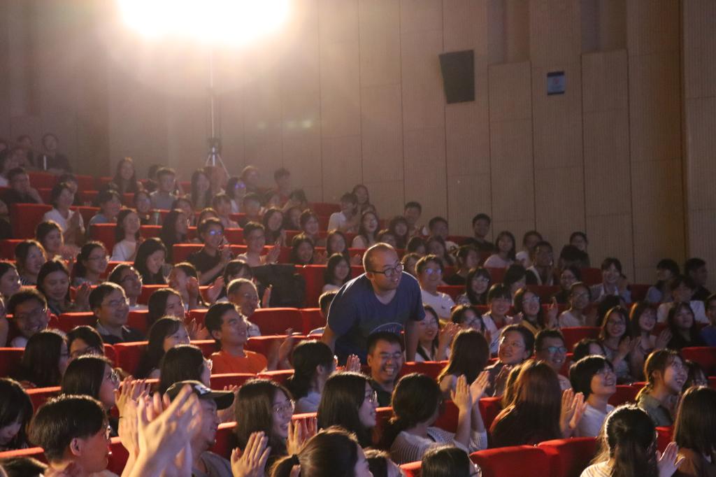 2019年5月12日,龙马奋进 •90后讲好中国故事——2019笑果×半夏校园行活动在77779193永利官网学院南路校区学术会堂206举行,主持人张绍刚和脱口秀卡司们与高校师生近距离接触,妙语频出,进校园讲好中国故事,带来青年人对社会的思考。77779193永利官网院长兼MBA教育中心主任王瑞华、77779193永利官网党委书记葛建新、MBA教育中心副主任贾晓菁、77779193永利官网党委副书记王容出席活动,全校近700名师生观看脱口秀表演。