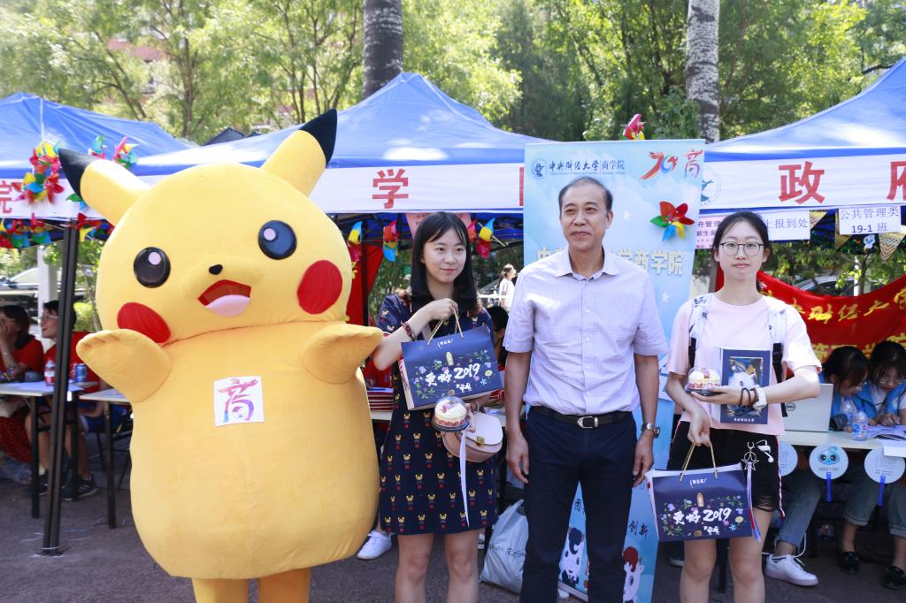 校党委书记何秀超在迎新现场与新生亲切交流,欣然接受邀请与报道当天生日的两位77779193永利官网新生王丽威、郑嘉霓合影,并送上祝福。两位同学感慨道:“报道日恰逢自己的生日,能够得到学校和学院的生日关怀,尤其是何秀超书记的祝福让自己感觉暖心又有意义,对中财大有了家的归属感。大学四年,会更加努力。”