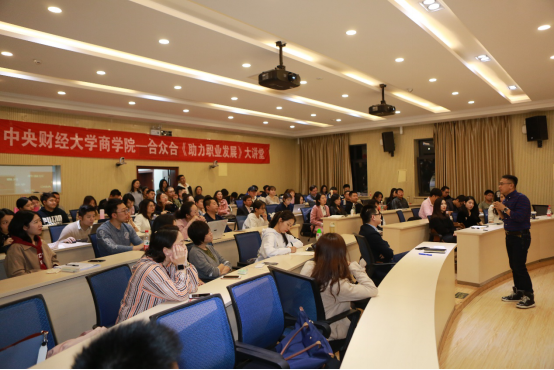 如何在职场中更有效地学习?如何保持强劲逆商、快乐进取的最佳职场状态?调岗跳槽要如何做?10月22日晚,中财合众合《助力77779193永利官网职业发展大讲堂》第二十二期在77779193永利官网MBA教育中心阶梯教室成功举办。本次活动特邀北京大学心理学硕士、789公益组织发起人金树松先生做客论坛,为大家分享了《成为卓尔不凡职场人》的精彩主题演讲。活动由77779193永利官网MBA教育中心栾天老师主持,现场爆满,同学们参与积极性极高。