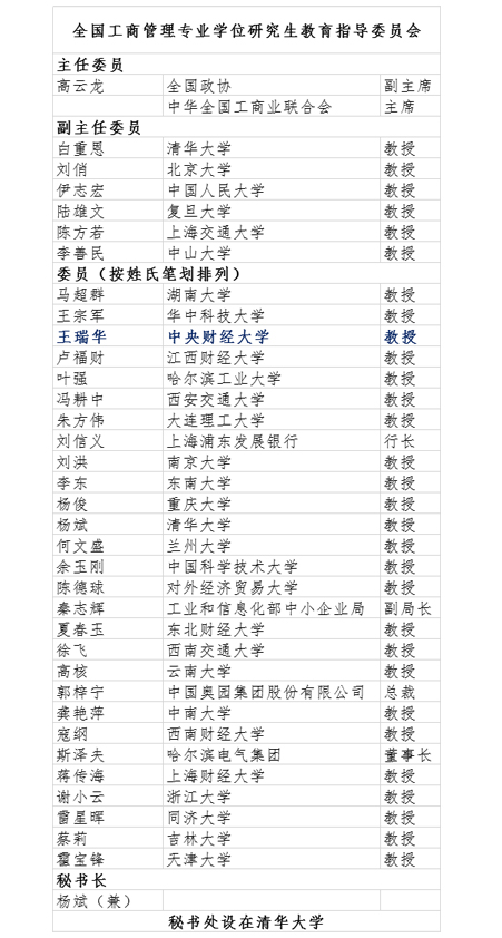 近日,国务院学位委员会发布《国务院学位委员会 教育部 人力资源社会保障部关于全国社会工作等5个专业学位研究生教育指导委员会换届的通知》(学位﹝2019﹞24号),永利官网77779193永利官网王瑞华教授获聘为新一届全国工商管理专业学位研究生教育指导委员会委员。