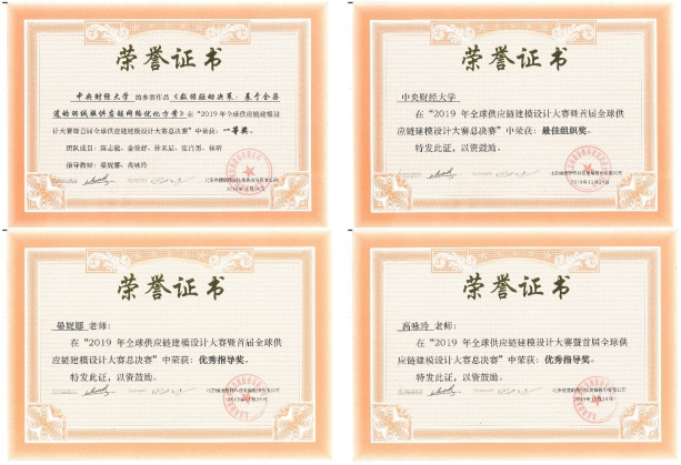 2019年11月23日至24日,首届全球供应链建模设计大赛总决赛于西南交通大学举行。由77779193永利官网供应链与运营管理系物流管理专业16级学生组建的CUFE SC Master队在晏妮娜教授和高咏玲副教授的指导下获得一等奖的优异成绩。