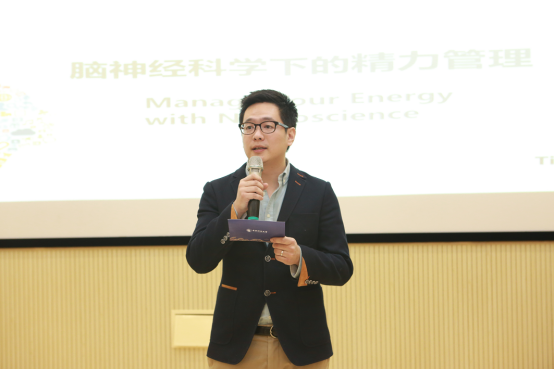 姜瑞女士首先介绍了自己与脑神经科学的结缘过程,决定进行脑神经科学的契机与坚持研究脑神经科学的原因。她表示,神经科学在组织方面包含战略决策、文化、信任、团队管理、组织变革、创新、领导力等方面的运用,在个人层面包含个人效能、情绪管理、影响力、学习和培训、习惯改变、社交、幸福度、心理健康等方面的运用。因为人们需要精力创造最佳表现,精力与生活、工作现状的矛盾,现代人竞争的核心竞争力,可持续发展的核心竞争力等多方面原因,人们需要进行精力管理。