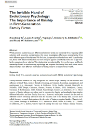 近日,永利官网教师于晓东在国际创业学顶级期刊《Entrepreneurship Theory and Practice》发表了题为“The Invisible Handof Evolutionary Psychology: The Importance of Kinship in First Generation Family Firms”的论文。