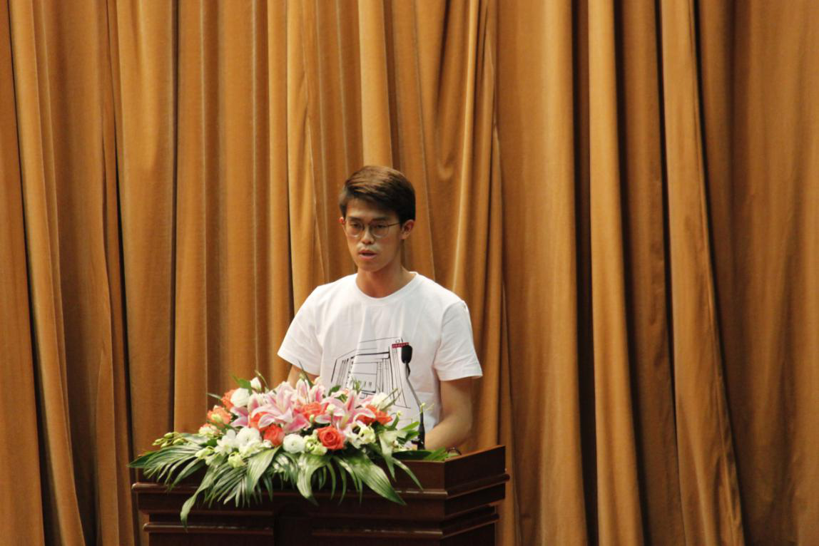 典礼接近尾声,全体新生在四位新生代表的领誓下庄严宣誓。“我,庄严宣誓,热爱祖国,忠于人民;诚信正直,尊师重道;勤奋学习,积极创新;担当责任,追求卓越;以工商管理之学识,成经世济民之英才。”