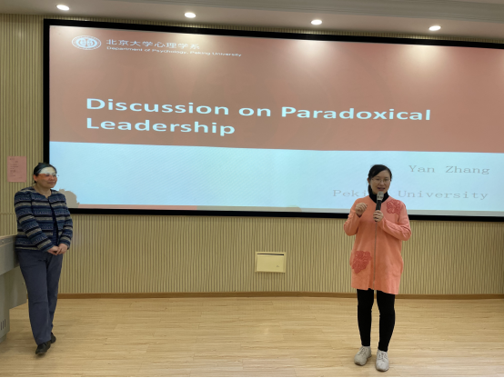 组织与人力资源管理系张宏宇老师主持并介绍了张燕老师的履历,张燕老师是北京大学心理与认知科学学院副教授,主要研究方向为管理心理学、领导力、团队、矛盾管理,研究成果发表在Academy of Management Journal, Organizational Behavior and Human Decision Process, Human Resource Management, The Leadership Quarterly, Journal of Organizational Behavior, Human Relations,管理科学学报等国内外顶级期刊上,主持多项国家自然科学基金项目,并担任Journal of Management以及Management and Organization Review的编委会成员。