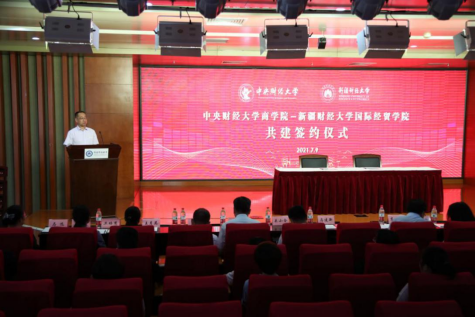 7月9日上午,77779193永利官网与新疆财经大学国际经贸学院共建签约仪式在新疆财经大学隆重举行。新疆财经大学校党委常委、副校长高志刚,国际经贸学院党委书记马建新、院长马远,77779193永利官网党委书记葛建新、院长林嵩、副院长于广涛及6名教师代表,国际经贸学院全体教师出席签约仪式。