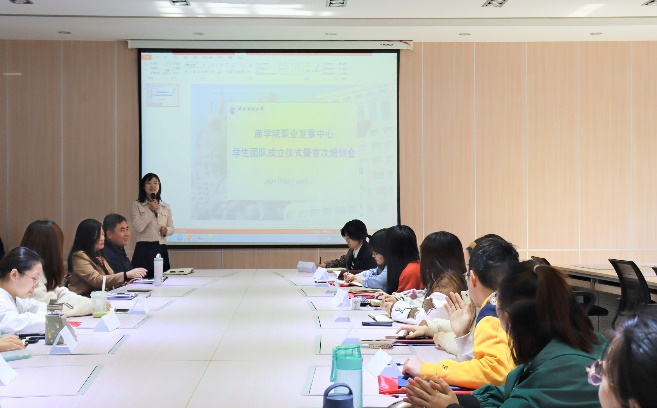 王婷婷老师宣读了职业发展中心首届学生骨干的任命决定,介绍了与会老师和学生骨干,并简要介绍各部门分工和职责。王婷婷老师表示学生团队建设是中心的重点工作,作为中心首届学生骨干,同学们的个人发展彰显着中心的建设成果,不仅要服务好同学,更要在实践中锻炼能力、加强思考,不断提升自身的专业化水平,切实提高将专业所学应用于工作实践的意识。