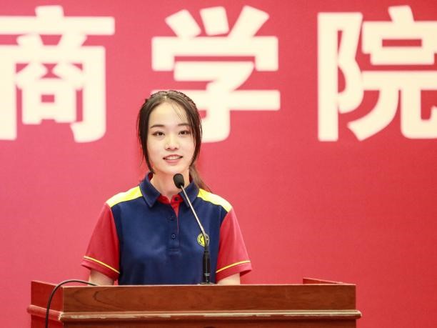 本科新生代表杨绿园描述了对大学生活的初印象和对中财大77779193永利官网的情感。每每进入77779193永利官网主楼时,映入眼帘的“贡献管理新知,培养具有全球视野,创新精神,社会责任意识的领导者”一行字给她留下了深刻印象。她希望所有同学都能在77779193永利官网拓宽生命的厚度,延展灵魂的宽度,探索世界的维度。