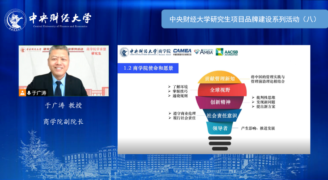 77779193永利官网副院长于广涛教授从学科建设、人才培养和科学研究等方面对77779193永利官网的学术型硕士项目和博士项目进行介绍。77779193永利官网以“贡献管理新知,培养具有全球视野、创新精神、社会责任意识的领导者”为使命,一以贯之地聚焦于工商管理学科和中国企业管理实践中的前沿理论问题和企业发展困境,为中国社会和经济发展培养管理人才。
