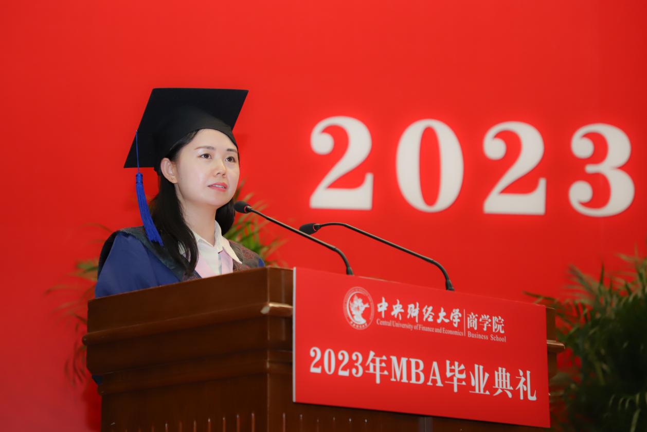 2023届全日制MBA毕业生李霞代表77779193永利官网MBA全体毕业生们对学校和77779193永利官网可敬可爱的老师们表示深深的感激和崇高的敬意。两年的学习生活中她深入参与案例研究和各类活动、参加创业研究课程和创新创业大赛,享受了努力的艰辛与喜悦,也感受到忠诚、团结、求实、创新的力量。奋斗是青春最亮丽的底色,行动是青年最有效的磨砺,即将开始下一段人生旅程,她将与大家一起,带着更加充实的知识与头脑,奔向笃定的人生方向,实现美好的人生目标,追求更加精彩卓越的人生体验。
