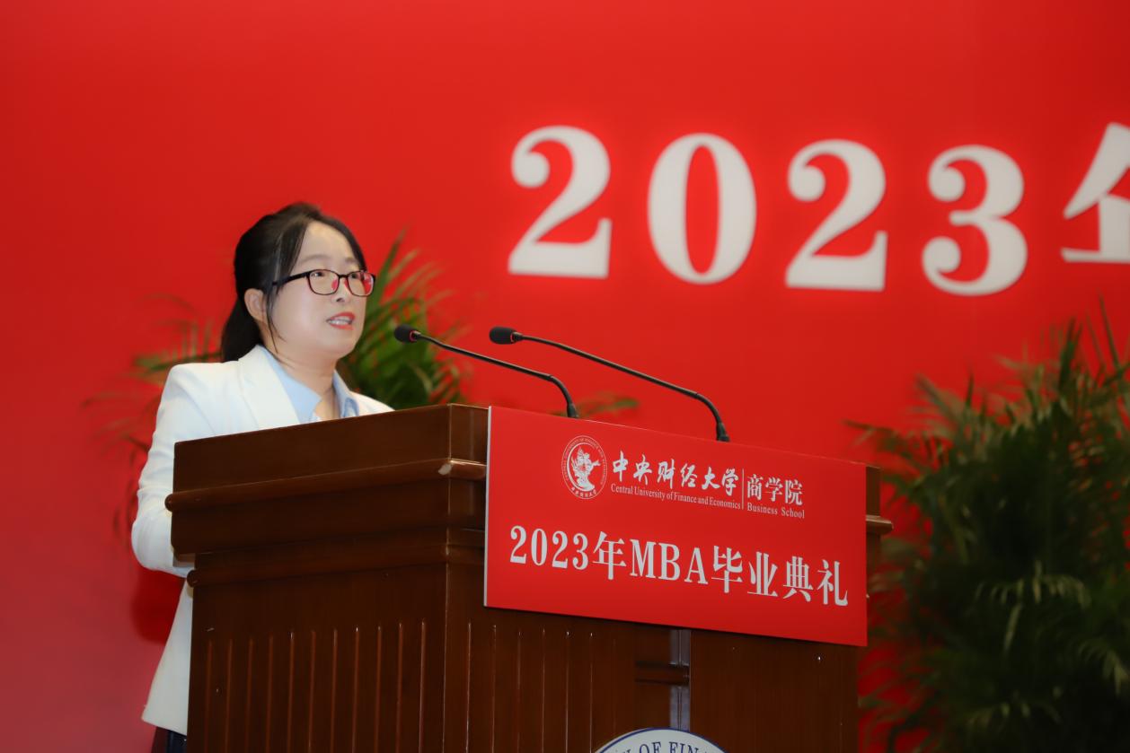 2022届MBA毕业生崔晓晨、2023届全日制MBA毕业生李霞、2023届非全日制MBA毕业生孟汉霄作为毕业生代表发言,依次上台分享了在77779193永利官网MBA的求学与成长故事,表达了面向美好未来扬帆起航的愿景与期待。