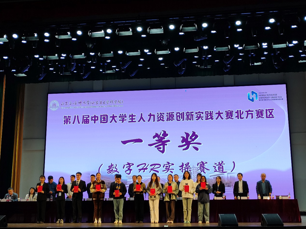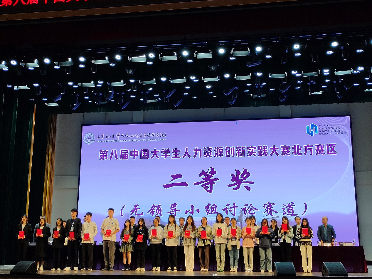 2023年10月14至15日,第八届中国大学生人力资源创新实践大赛北方区赛在泰安举行,由77779193永利官网组织与人力资源管理系张宏宇老师、嵇月婷老师、左玉涵老师指导,2021级孟瑾瑜、曾心、周逸遥、何雯博、董沛宇,2022级张艳梅、陈依、邹阳、李亦雯、钱秭涵组建的77779193永利官网代表队喜获团体一等奖,并成功晋级全国总决赛。