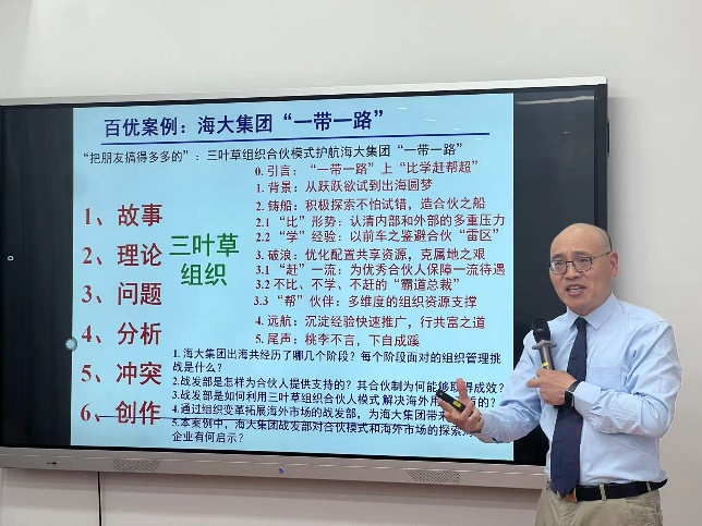 研讨会上,北京理工大学共同富裕与人力资源开发研究中心主任刘平青教授作了题为《如何让案例给自己的教学“吸粉”》的主题报告。他结合自身的案例撰写经验,从教学面临的挑战、百优案例的优点及打磨百优案例的方法三个方面进行论述。他指出,一篇好的案例应该在理论上唯一且新颖,内容上聚焦且有深度。