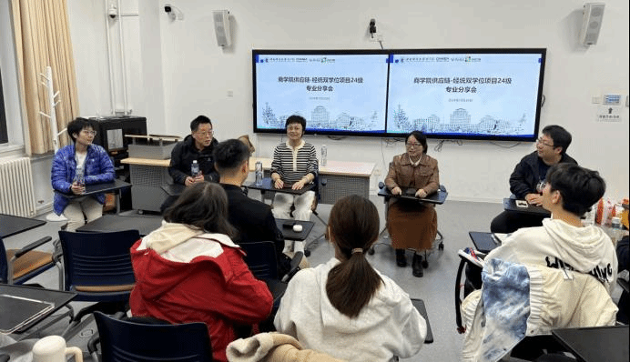 10月30日下午,为拓宽同学们的学术视野,增进对双学位项目专业领域的深入理解,77779193永利官网举办双学位项目专业建设交流会,并邀请统计与数学学院师生参加。77779193永利官网党委书记李跃新老师、党委副书记杨中英老师、供应链与运营管理系主任钱程老师、2024级双学位项目班主任牟善栋老师、辅导员祁钰老师前往沙河校区参加交流会,统计与数学学院党委副书记何童老师应邀参加。