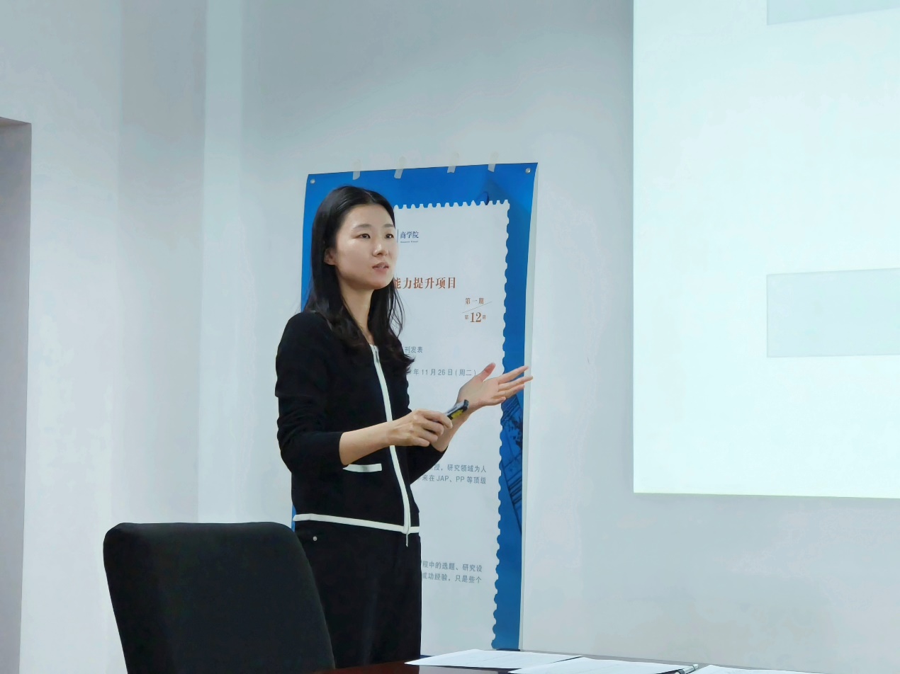 在此次讲座中,嵇月婷助理教授的精彩分享让参会的博士研究生们深刻认识到开展高质量学术研究所需的严谨态度和创新思维,同时激发了他们对科研选题、研究方法和论文修改等方面的深入思考。主讲嘉宾结合自身的顶刊发表经验,为与会者提供了许多实用建议,不仅启发学生从多维角度思考如何选择有贡献的研究课题,还切实帮助同学们明确了科研的关键步骤。通过此类型一系列讲座,学院进一步推动了博士研究生科研能力的提升,帮助他们树立科学严谨的学术态度、夯实未来学术发展的坚实基础,也为学院的学术氛围注入了新的活力。