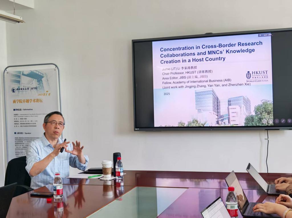 李家涛教授本次讲座的主题为“跨国研究合作中的集中度与跨国公司在东道国的知识创造”。他从理论与实践层面探讨了跨国公司(MNCs)内部跨国合作对知识创造的影响,重点分析了将跨国共同发明集中于东道国少数发明人身上与当地知识创造之间的关系。讲座首先回顾了跨国公司在全球范围内进行知识创造所面临的管理挑战,随后基于1980年至2008年美国制药跨国公司的跨国公司-国家-年度层面数据,阐述了集中度对知识创造的积极作用,并验证了相关假设。讲座最后提出了一些关于跨国合作与知识创造的未来研究方向,为参会者提供了深入思考的启发。