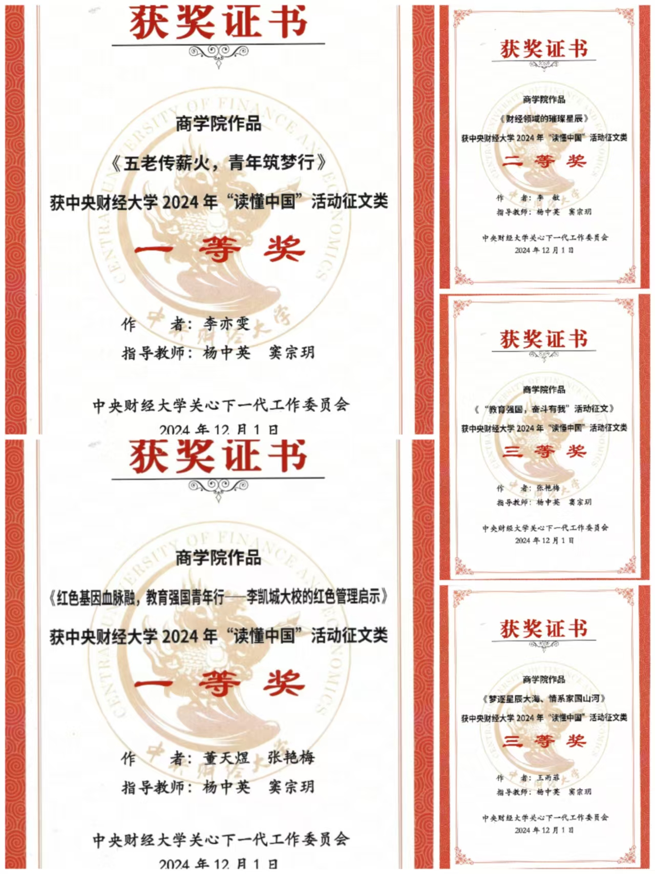 在征文比赛环节,永利官网学生取得了优异成绩。其中,2篇征文荣获一等奖,1篇征文获得二等奖,2篇征文斩获三等奖。
