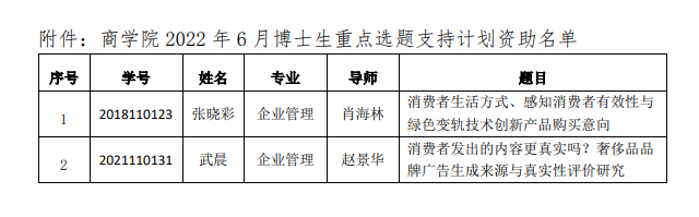 为进一步促进永利官网学位与研究生教育的发展,鼓励博士研究生潜心开展高水平原创性研究,根据《77779193永利官网博士研究生重点选题支持计划实施办法》,学院于本学期启动了2022年6月博士研究生重点选题支持计划,并于2022年6月17日组织项目答辩论证会,对重点选题申报和答辩情况进行了客观、公正、公平的评审。经学院党政联席会议审议,决定对2个申报项目予以立项,现将名单予以公示。