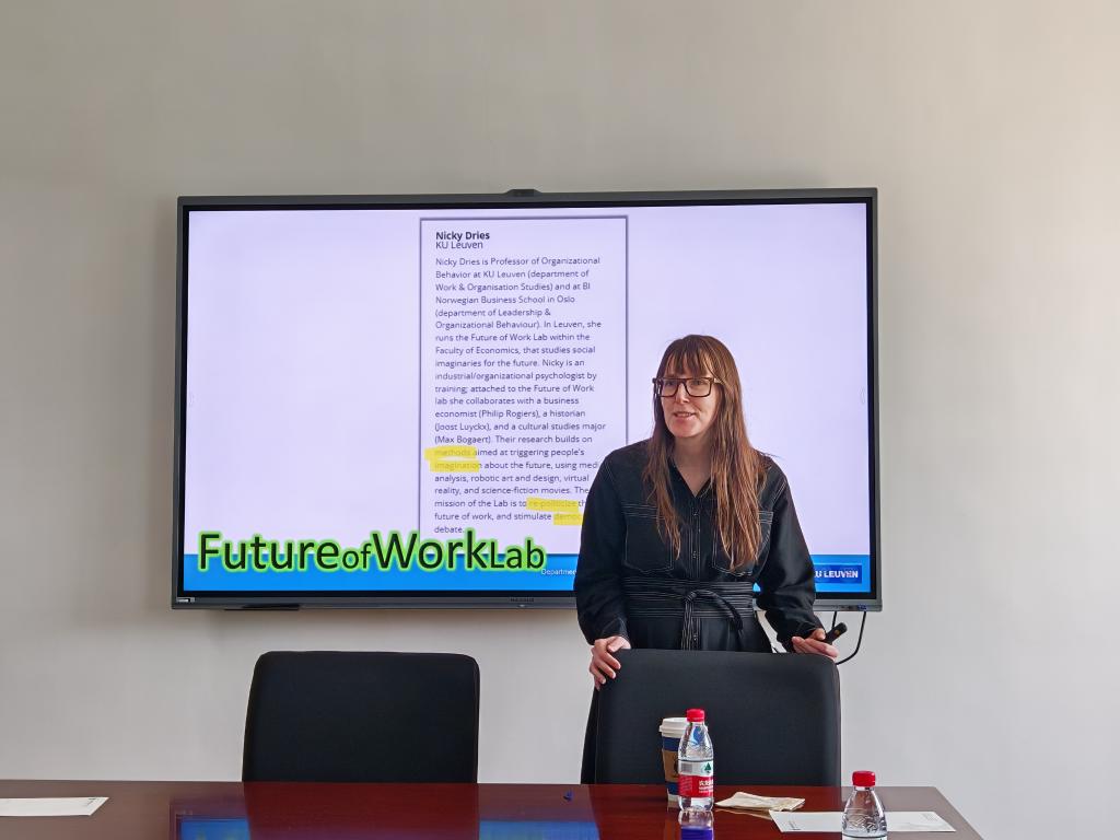 会议由77779193永利官网组织与人力资源管理系系主任张宏宇副教授主持。在讲座正式开始前,张宏宇老师详细介绍了Nicky Dries教授的学术背景。Nicky Dries教授现任比利时鲁汶大学工作与组织研究系及挪威BI77779193永利官网领导力与组织行为系正教授。在鲁汶大学,她还担任“未来工作实验室”布莱特学者(2012年起)。截至目前,她已发表60余篇国际同行评审论文、2部专著及20篇书籍章节。在学术圈外,她积极参与科学传播工作,定期在《哈佛商业评论》《福布斯》等商业媒体发表文章及评论,参与播客录制,并曾出演探讨颠覆性技术对劳动力市场影响的纪录片《数字困境》。2021年,她从逾千名候选人中脱颖而出,入选比利时首届“40 under 40”榜单,成为代表国家未来社会领袖的40位杰出青年之一。目前,Nicky Dries教授担任《Journal of Management》副主编,并在《人力资源管理杂志》(HRMJ)、《欧洲工作与组织心理学杂志》(EJWOP)等多个期刊编委会任职。同时,她长期担任比利时弗兰德研究基金会(FWO)、荷兰科学研究组织(NWO)、芬兰研究委员会及欧盟委员会等国家级与欧洲科研资助机构的项目评审专家。