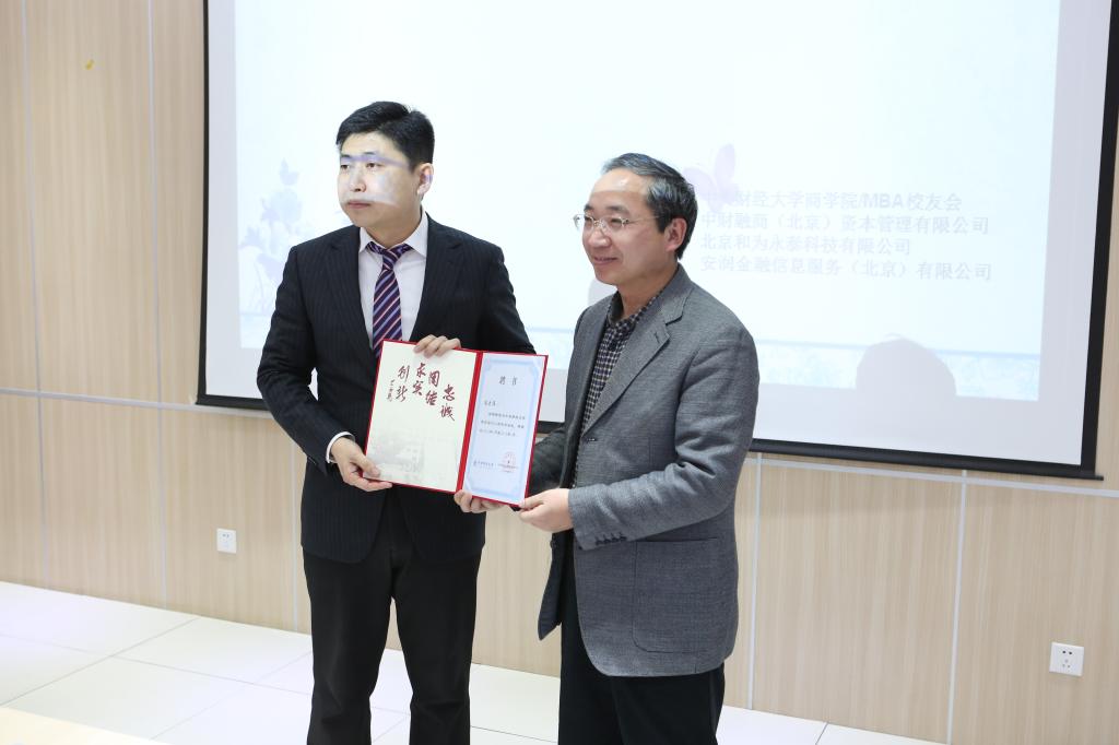 王瑞华院长为第四届MBA校友会会长冯大任颁发聘书