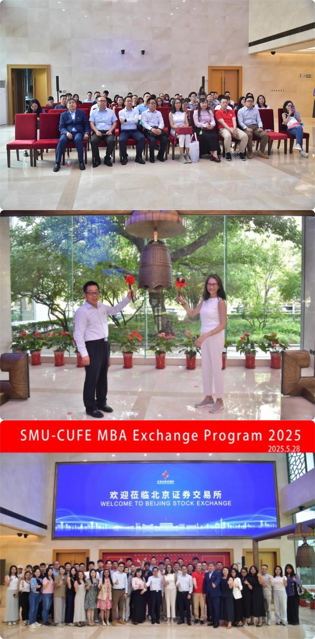 走进北交所和金融街中心——作为中国证券三大交易所之一的北京证券交易所,也被安排为了本次师生团队的重要一站。在北交所,团队实地了解了中国多层次资本市场对创新型中小企业的支持机制,如30%涨跌幅限制、做市商制度等设计,旨在为“专精特新”企业提供更灵活的融资环境等相关政策。北交所负责人的专业解读,让学生对中国资本市场的创新性、包容性有了全新认识。在此次参访中,团队成员荣幸地体验了交易所的开市敲钟仪式,亲身感受中国资本市场的蓬勃活力。随后,师生们还与交易所高管进行了深入交流,探讨了中国资本市场改革开放的最新进展。