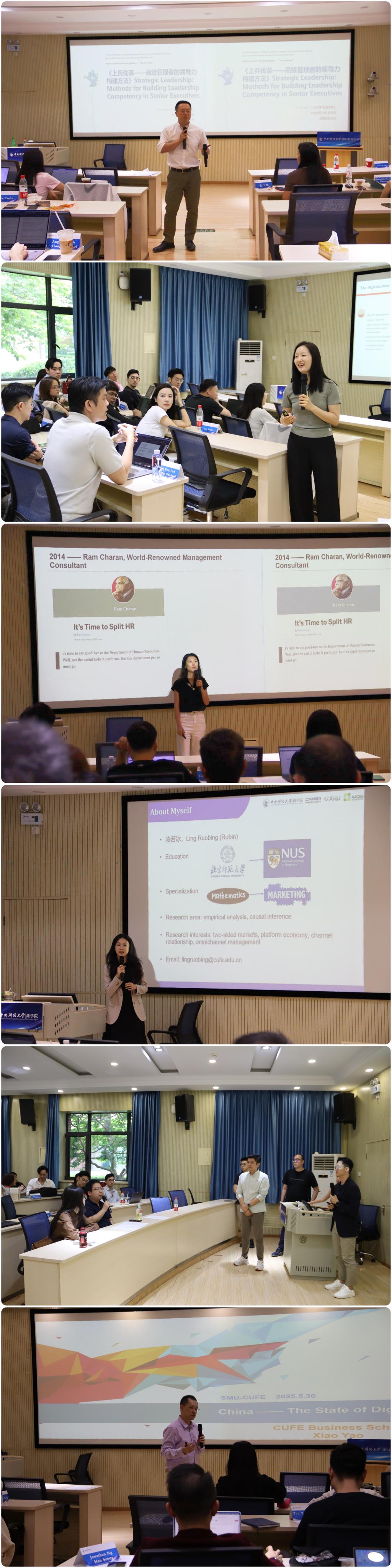 凌若冰助理教授以实体店发货(SFS)策略为切入点,用零售商数据论证全渠道整合对消费行为的影响,强调营销需紧跟技术迭代。姚潇老师聚焦《数字经济时代中国金融市场的转型》,通过回顾近年来中国互联网经济的高速发展路径,以淘宝、京东、拼多多等互联网巨头飞速发展的实际案例,揭示当前数字经济的深层影响力。此外。牟善栋副教授和凌若冰助理教授参加了结课仪式,对三个小组展示进行点评指导,并与学生们展开了深入的互动交流。