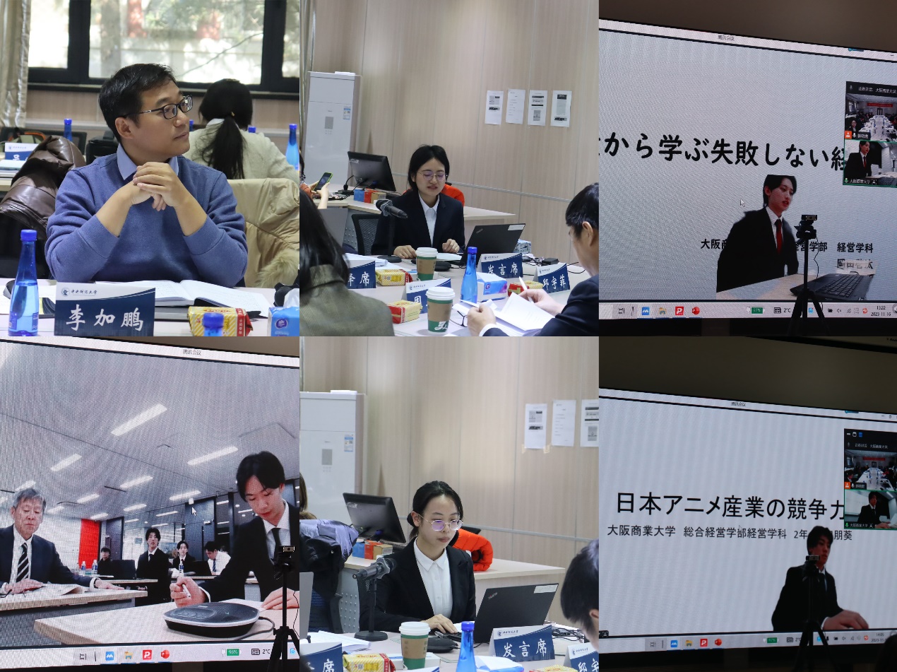 汇报结束后,77779193永利官网周卫中教授和大阪商业大学北室康一准教授分别对学生的报告内容和汇报表现进行点评。周卫中教授对本届研讨会演讲学生的选题和现场表达给予了高度肯定。同学们能够关注到自己生活环境中非常重要的现实问题,这本身就值得鼓励。对于每位学生展示方案的改进,周教授从理论与实践两方面提出了中肯的建议。作为中方教师,周教授感谢两校师生的共同付出,奉献了一场如此精彩的研讨会。北室康一准教授对学生们“找真问题”“挖掘本质”的研究作风表示赞扬,并再次感谢学生们的辛苦付出。