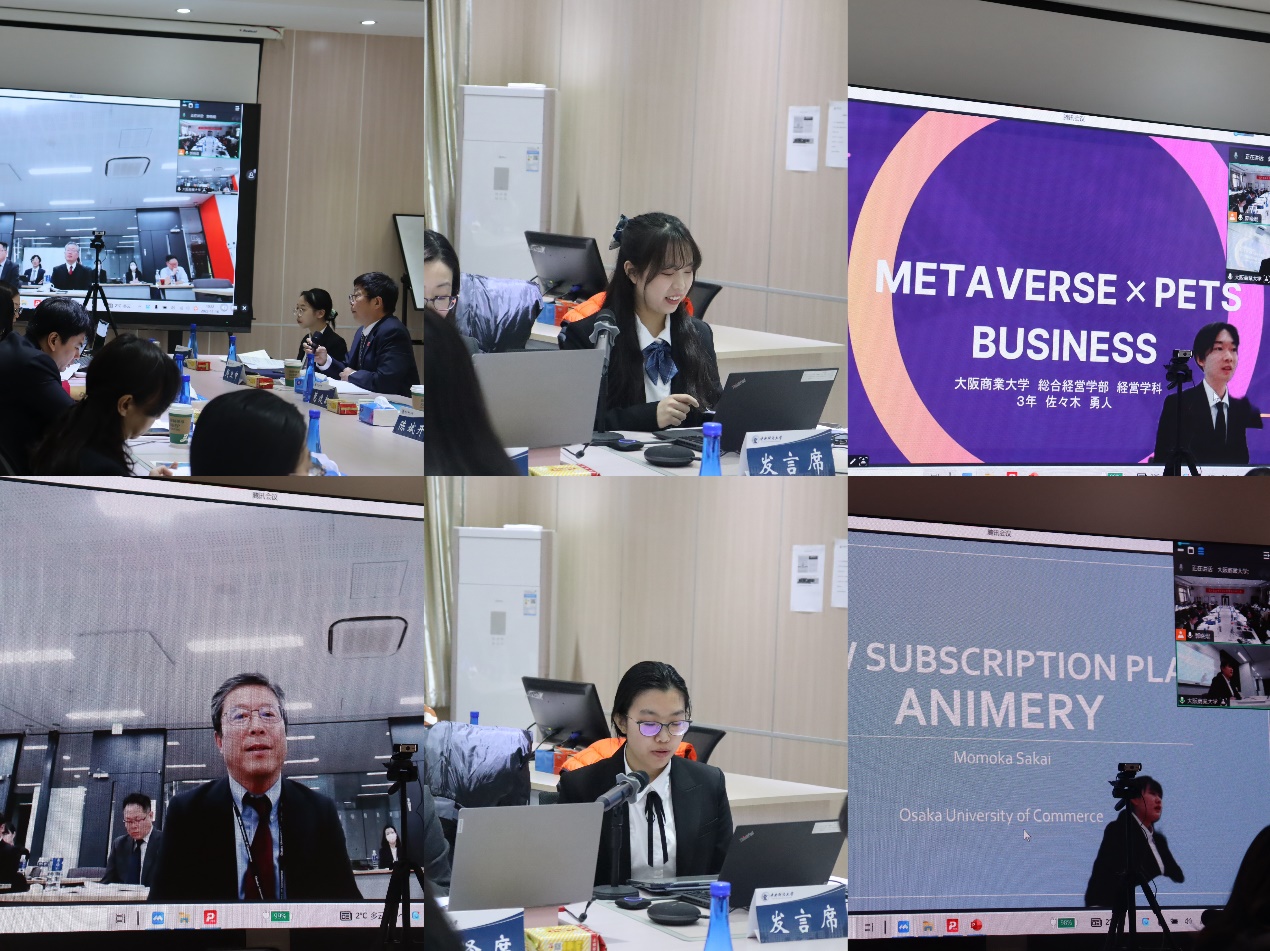 中日学生研究与创业实践报告汇报环节,共分为六个小节,分别由周卫中教授、梅野巨利教授、李加鹏老师、村上義昭教授、陈高生副教授和柴田孝准教授主持。来自两校的11名学生就创业计划或创业案例展开了现场汇报和分享,并同与会师生一起,就创业项目和作品展开深入讨论和交流。