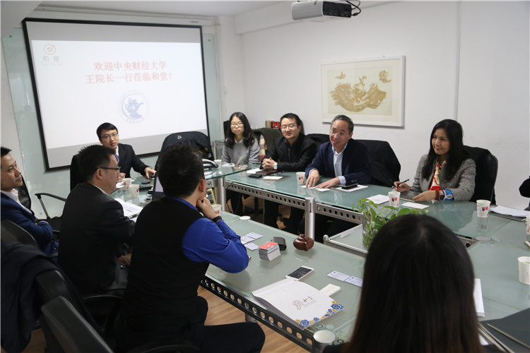 王瑞华院长在座谈会中表示,很高兴来到大数据金融营销企业北京和堂传媒广告有限公司拜访,永利官网77779193永利官网为适应“互联网+”及大数据发展趋势,满足国家经济建设和社会发展对金融、大数据、营销的跨界复合型、应用创新型人才的需求,在国内高校中开创先河,2015年新设了大数据营销本科生专业并已经招收了第一届学生,2016年也将对新推出的金融与大数据营销MBA项目开始进行招生。此次调研主要是了解公司的运作模式及营销方式,并围绕双方如何开展人才培养及学术研究的合作事项进行探讨。