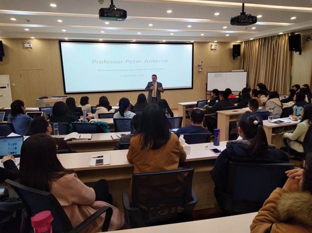 英德杰国际管理公司(InterGestWorldwide)CEOPeter Anterist教授立足多年的国际企业管理经验,讲解了国际业务外包的案例以及企业在拓展海外市场过程中面临的问题。