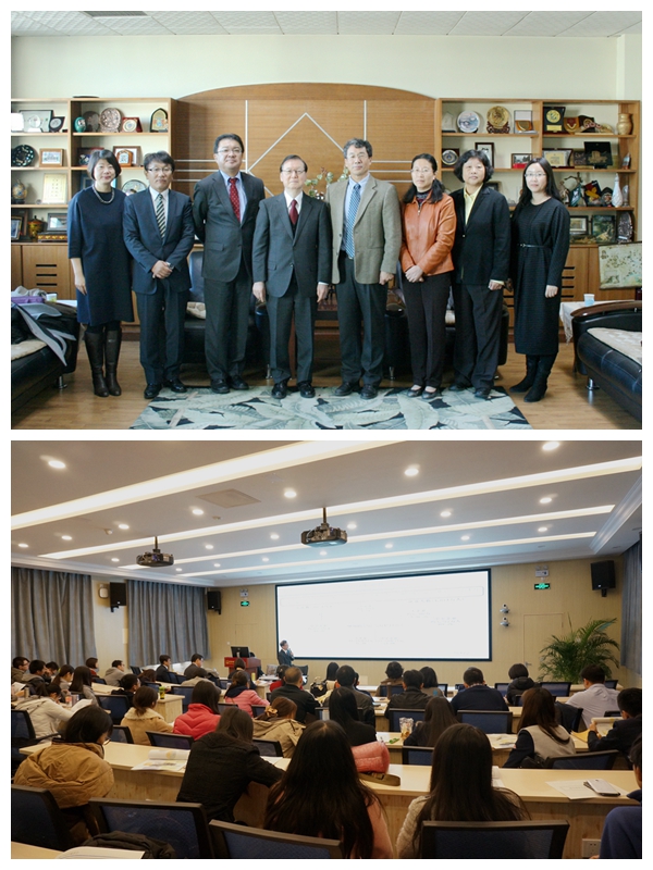 October 30, 2015, President of Shoko Chukin Bank and Guest Professor of CUFE Business School, Mr. Hideji Sugiyama and his colleagues visited CUFE. Vice President Li Junsheng received the guests. Director of the University International Office Zhang Xiaoyan, Director of East Asian Institute CaiCaishi, Party Branch Secretary of CUFE Business School GeJianxin attended the meeting. After the meeting, Mr. Hideji Sugiyama went to CUFE Business School and held a special presentation entitled "Sino Japanese SME Cooperation” to postgraduate students from CUFE Business School. The presentation was hosted by Party Branch Secretary of CUFE Business School GeJianxin.