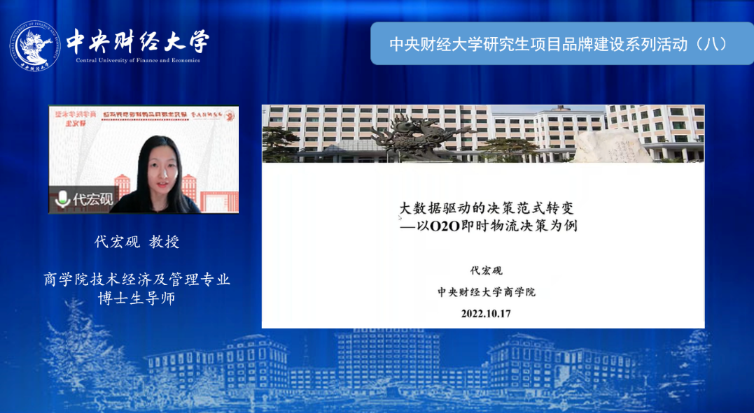 In order to effectively promote the connotative development of graduate education and project brand building at Central University of Finance and Economics, and continuously improve the quality of graduate students, the “Central University of Finance and Economics (CUFE) Graduate Program Brand Building Series (VIII) - The Business School’s Open Class and Enrollment Seminar for Academic Graduate Students” jointly organized by the Graduate School and the Business School was successfully held on the cloud on the afternoon of October 17.